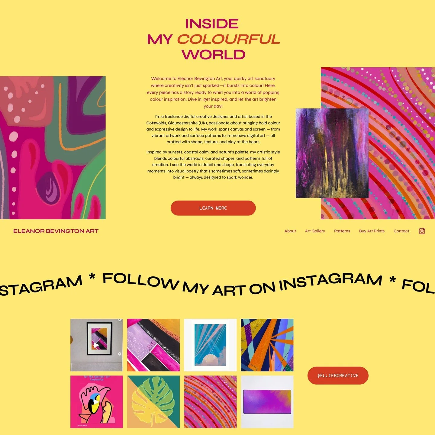 Welcome to Eleanor Bevington Art, your quirky art sanctuary where creativity isn’t just sparked—it bursts into colour! Here, every piece has a story ready to whirl you into a world of popping colour inspiration. Dive in, get inspired, and let the art brighten your day!