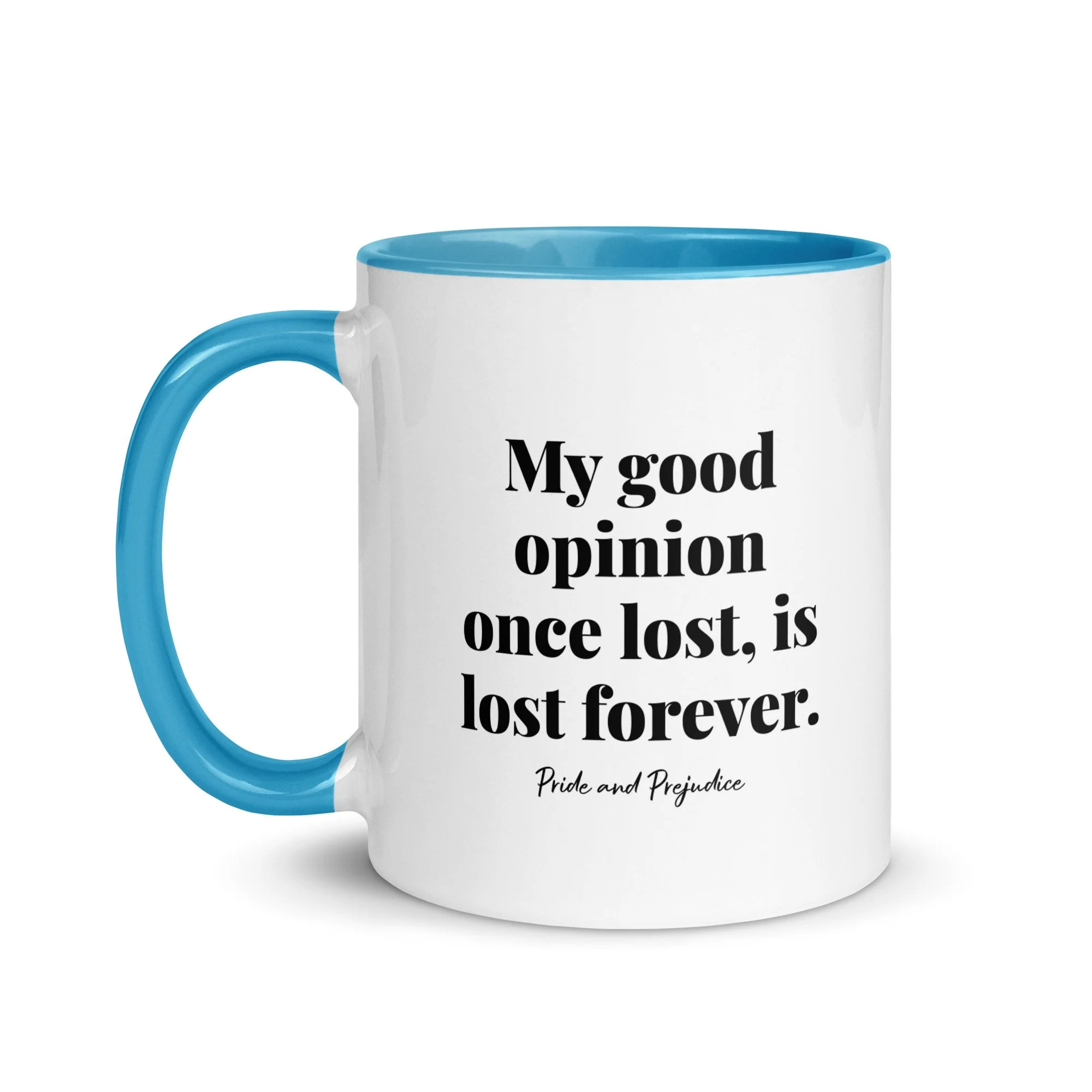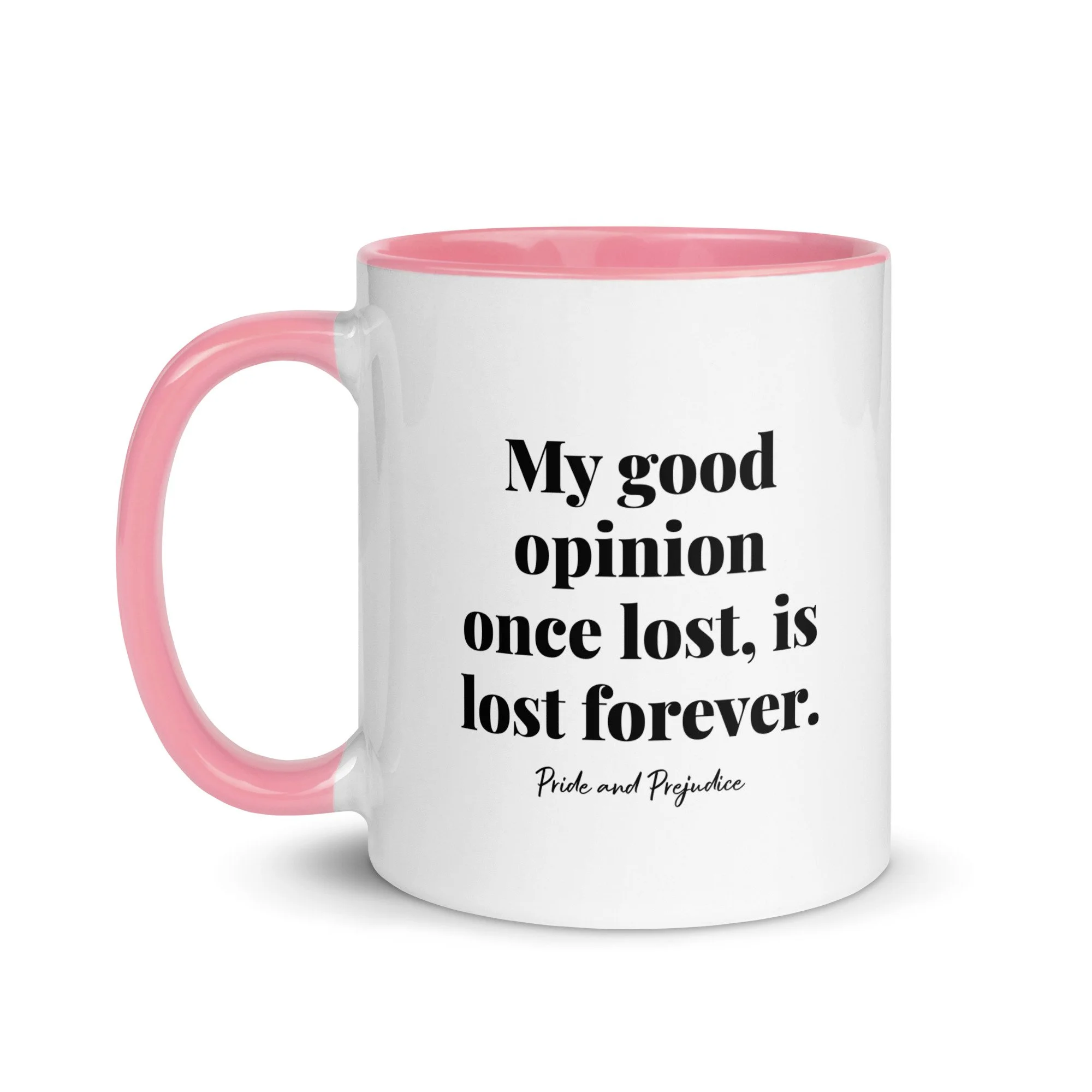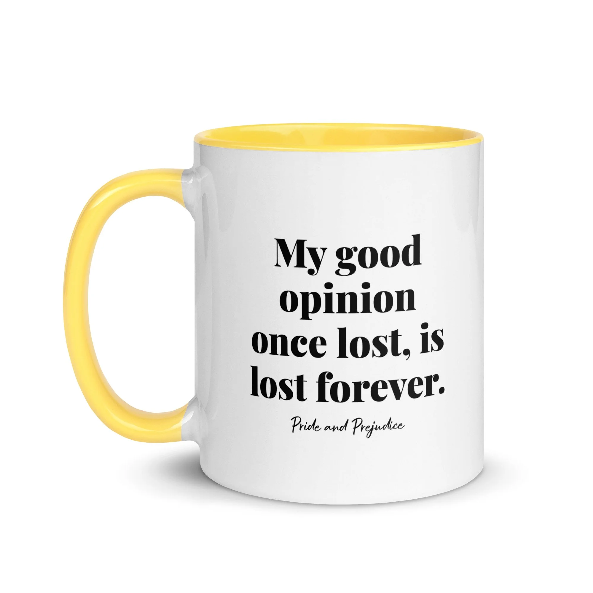 Mr Darcy Quote Mug - Jane Austen's Pride & Prejudice - My good opinion once lost, is lost forever.